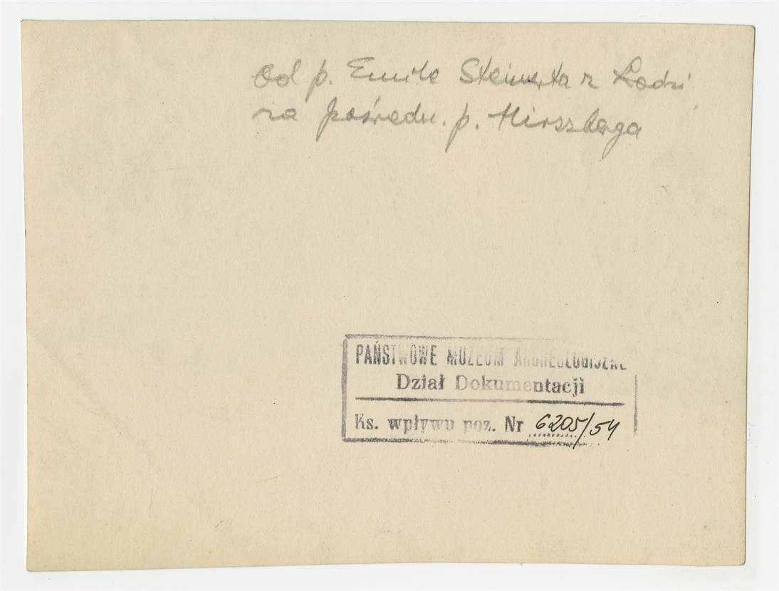 Czarnobiała fotografia przedstawiająca pięć naczyń glinianych. Notatka ręką S. Krukowskiego