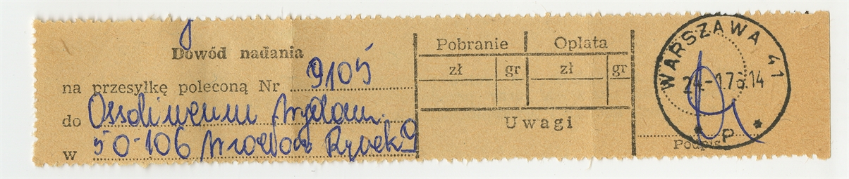 Dowód nadania przesyłki poleconej z dn. 24 I [19]76 r. - awers