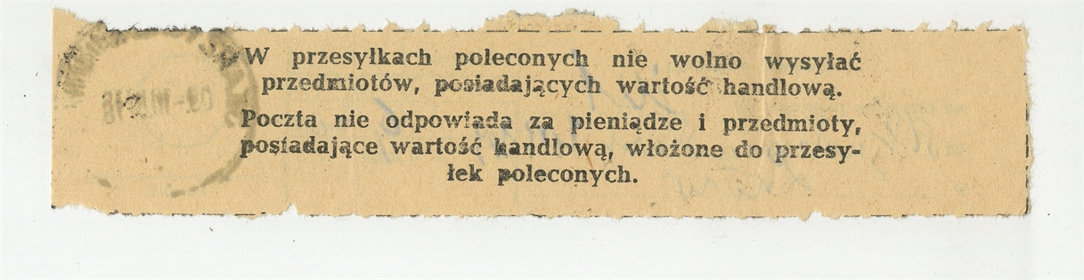 Dowód nadania przesyłki poleconej z dnia 09.10. [19]57 roku do Akademii Nauk USSR we Lwowie rewers