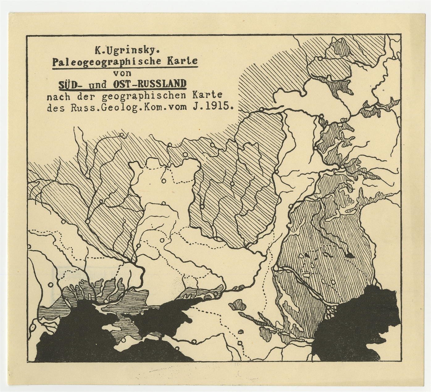 Druk - mapa południowej i wschodniej Rosji: K.Ugrinsky. Paleogeorephische Karte von Süd- und Ost_Russland nach der geogrqphischen Karte des Russ. Geolog. Kom. Von J. 1915. Brak skali