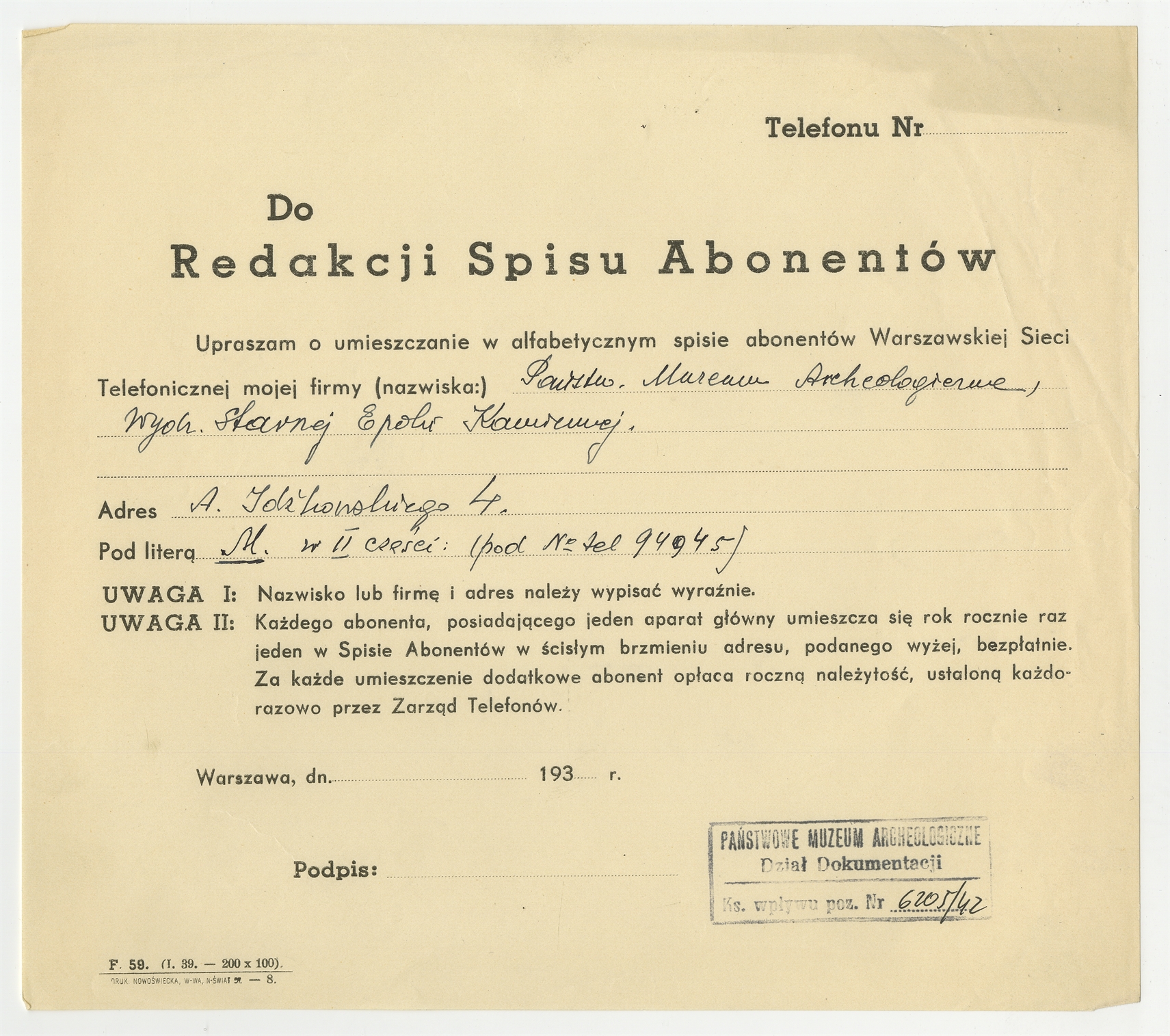 Element 1 - Druk Redakcji Spisu Abonentów - prośba o umieszczenie w alfabetycznym spisie abonentów częściowo wypełniony ręką NN