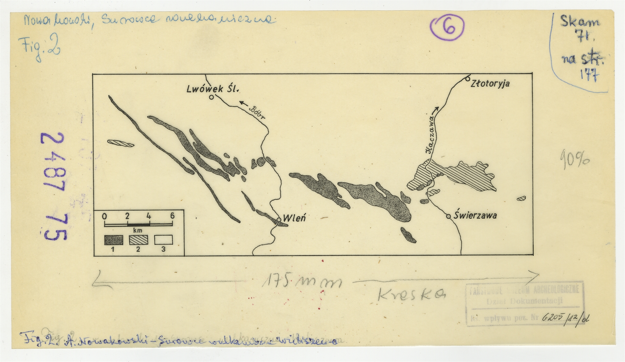 Ilustracje do "Skama 71" - Mapka na kalce nr 2 zatytułowana: A. Nowakowski "Surowce wulkaniczne Wieliszewa"