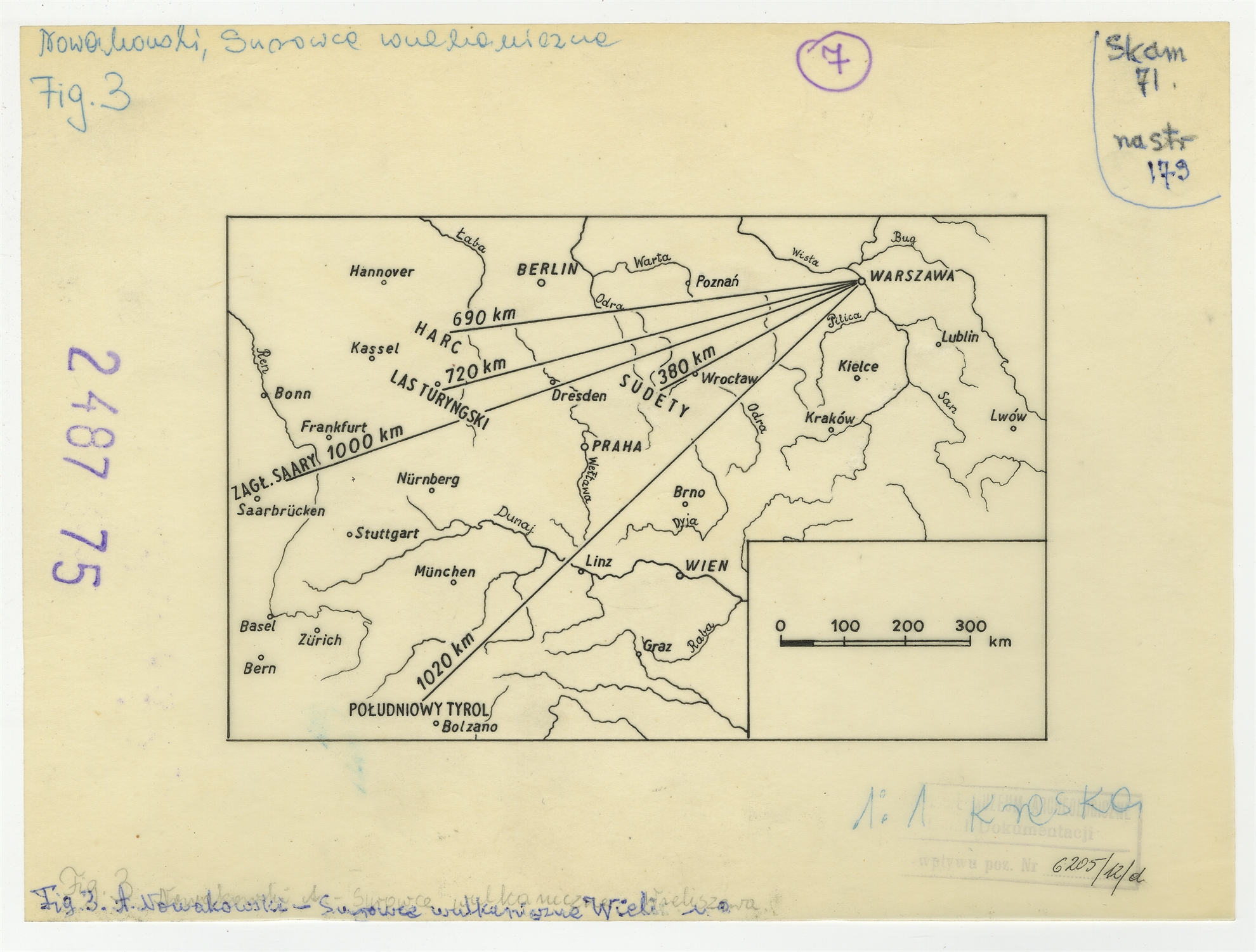 Ilustracje do "Skama 71" - Mapka na kalce nr 3 zatytułowana: A. Nowakowski "Surowce wulkaniczne Wieliszewa"
