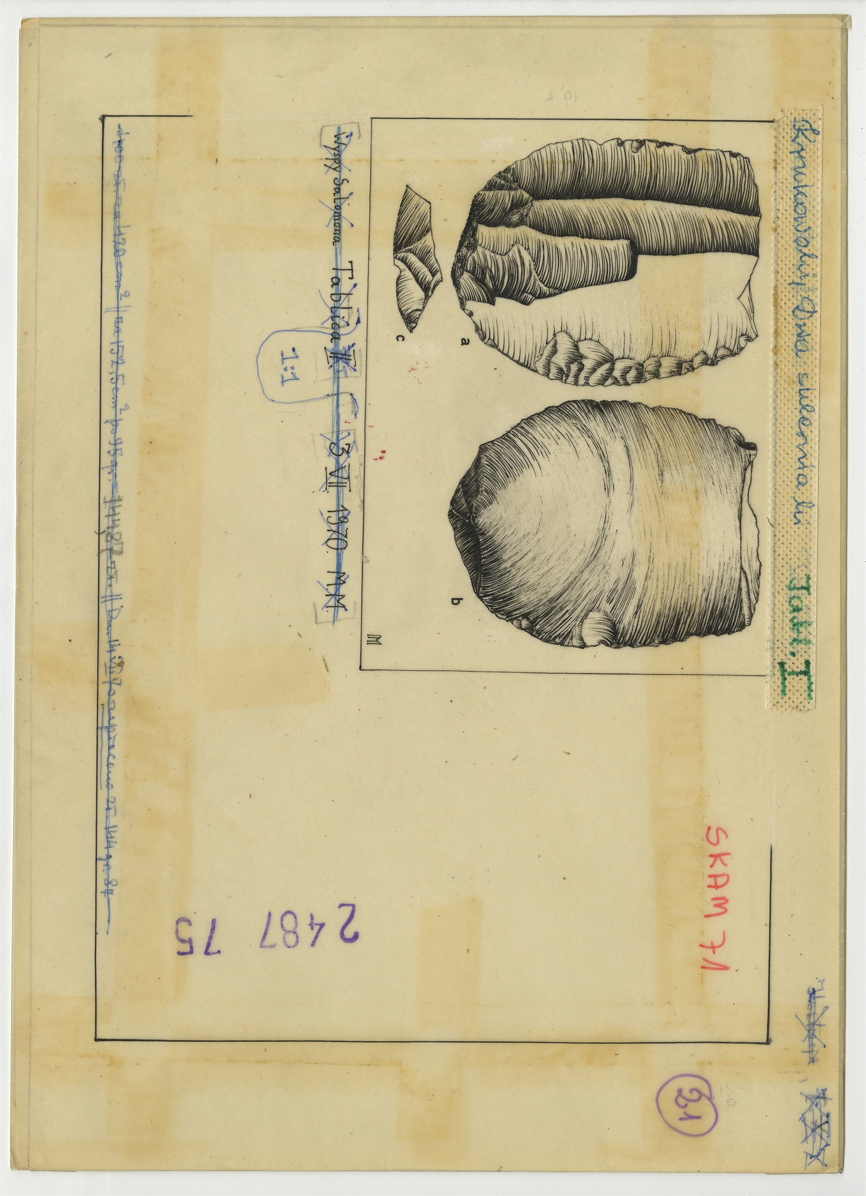 Ilustracje do "Skama 71" - Tablica I z rysunkami krzemieni tuszem na kalce zatytułowana: S. Krukowski "Dwa skleniaki"