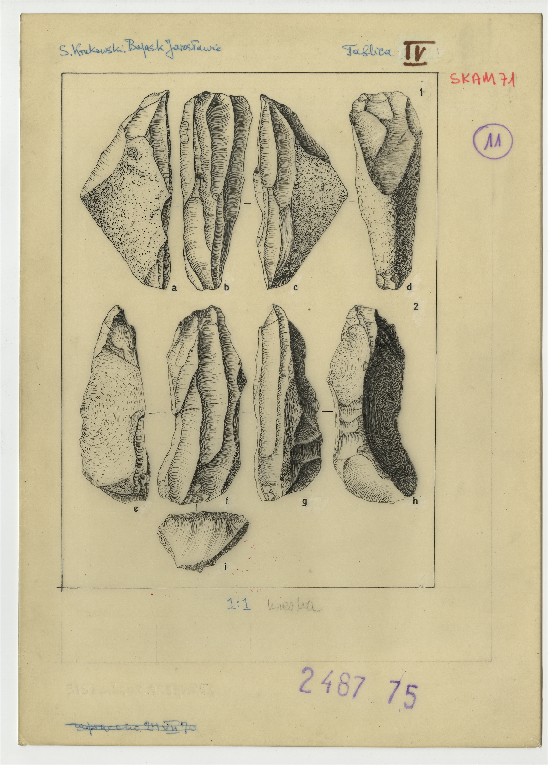 Ilustracje do "Skama 71" - Tablica IV z rysunkami krzemieni tuszem na kalce zatytułowana: S. Krukowski "Bejask Jarosławie"