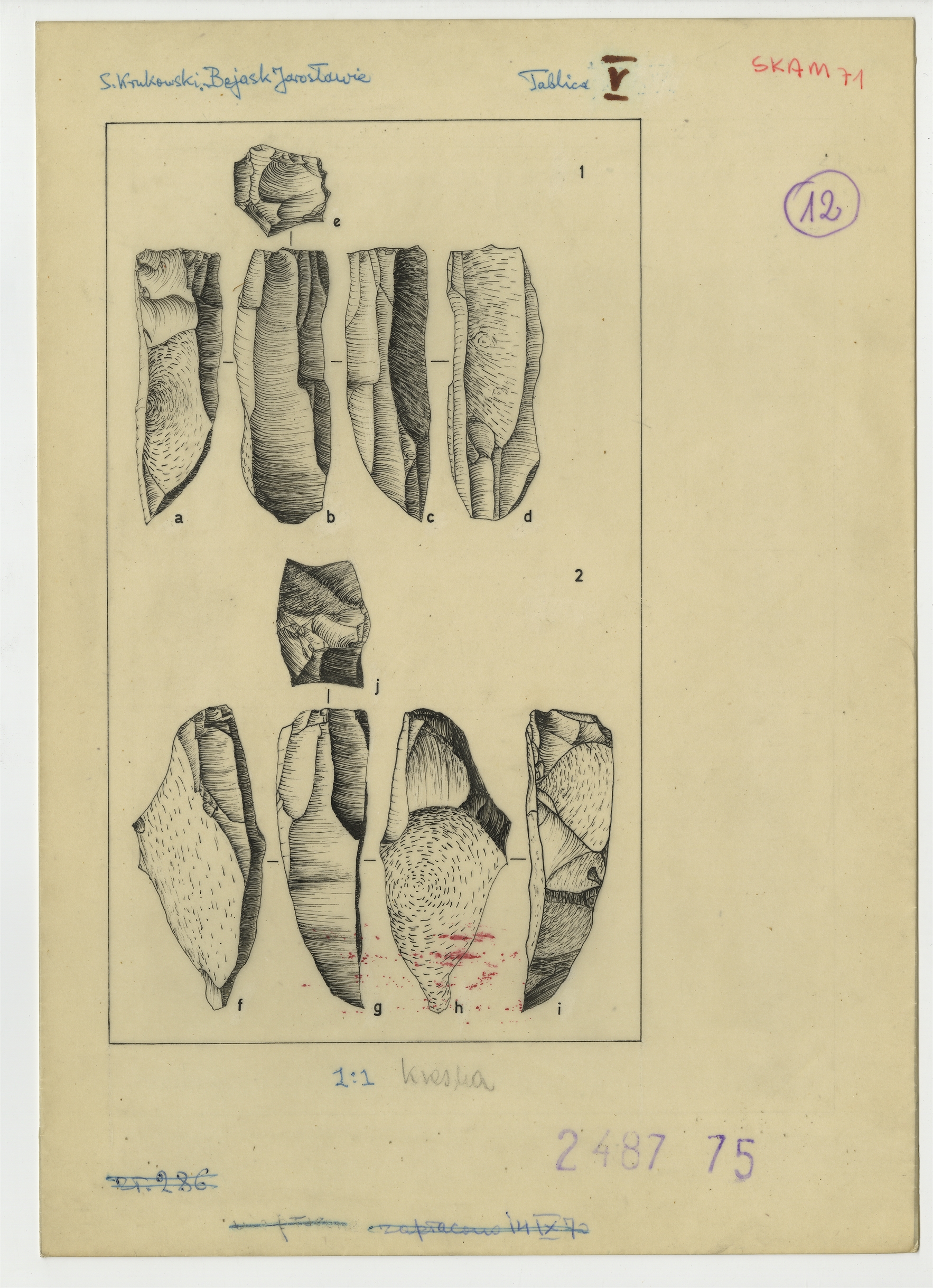Ilustracje do "Skama 71" - Tablica V z rysunkami krzemieni tuszem na kalce zatytułowana: S. Krukowski "Bejask Jarosławie"