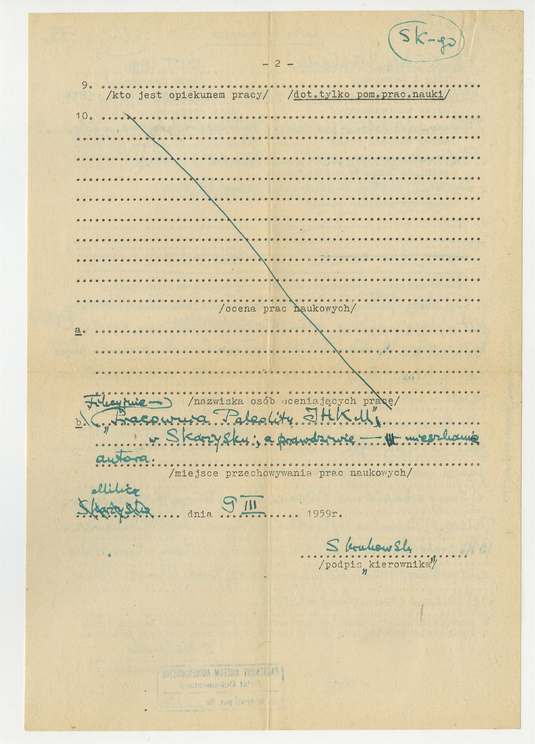 Karta ewidencyjna (dla pracownika instytutu naukowego) wypełniona 9 III 1959 roku ręką S. Krukowskiego - strona 2