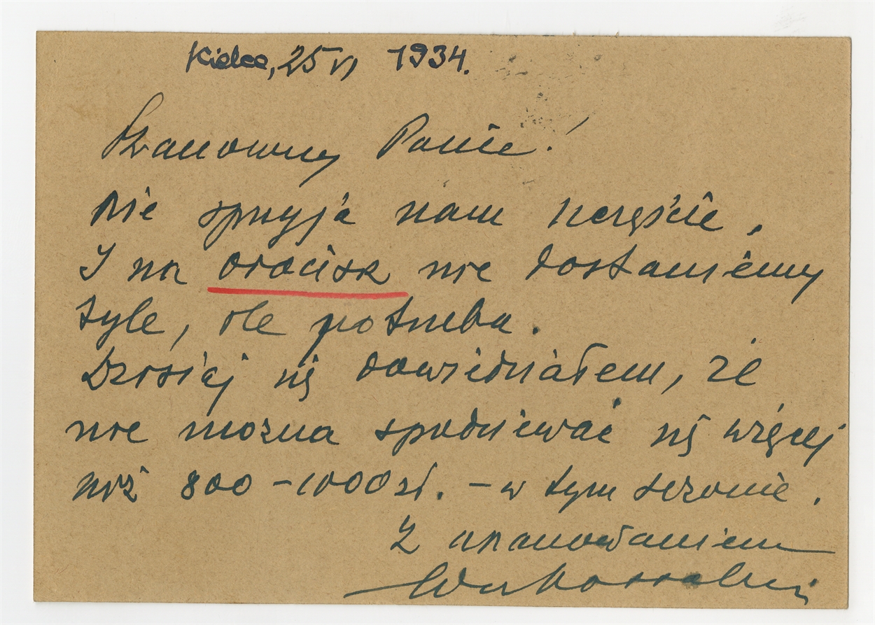 Karta pocztowa od prof. E. Massalskiego do prof. Stefana Krukowskiego 25 VI 1934 r. - rewers