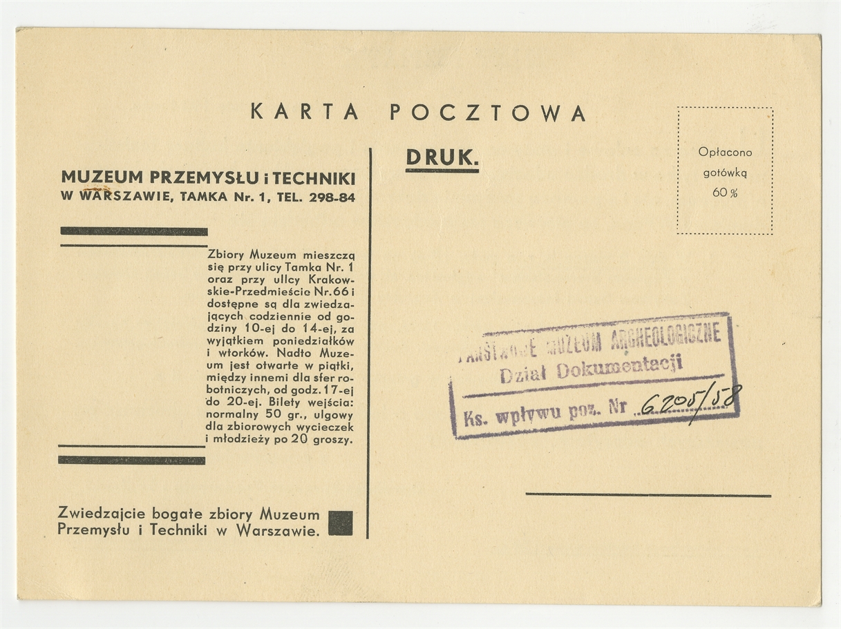 Karta Pocztowa - zaproszenie z Muzeum Przemysłu i Techniki na serie odczytów na rewersie właściwe zaproszenie Warszawa luty 1934 r. - awers