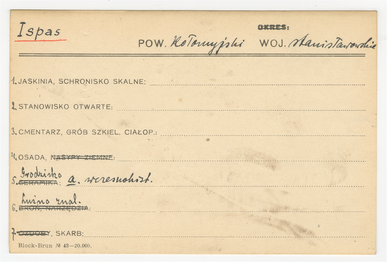 Karta stanowiska "Isajewicze gm. Derewna pow. Słonimski woj. nowogródzkie" (druk rękopis) - strona 1