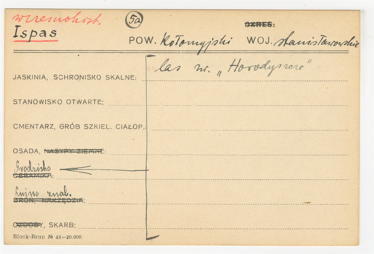 Karta stanowiska "Isajewicze gm. Derewna pow. Słonimski woj. nowogródzkie" (druk rękopis) - strona 1