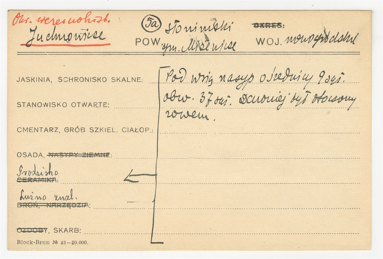 Karta stanowiska "Juchnowicze gm. Miżewicze pow. Słonimskie woj. nowogródzkie" (druk rękopis) - strona 1