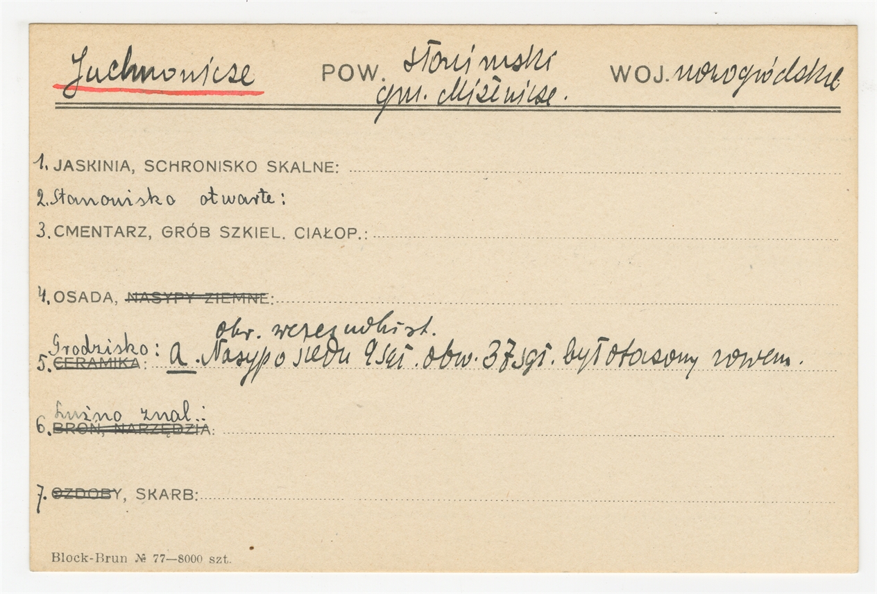 Karta stanowiska "Juchnowicze gm. Miżewicze pow. Słonimskie woj. nowogródzkie" (druk rękopis) - strona 1