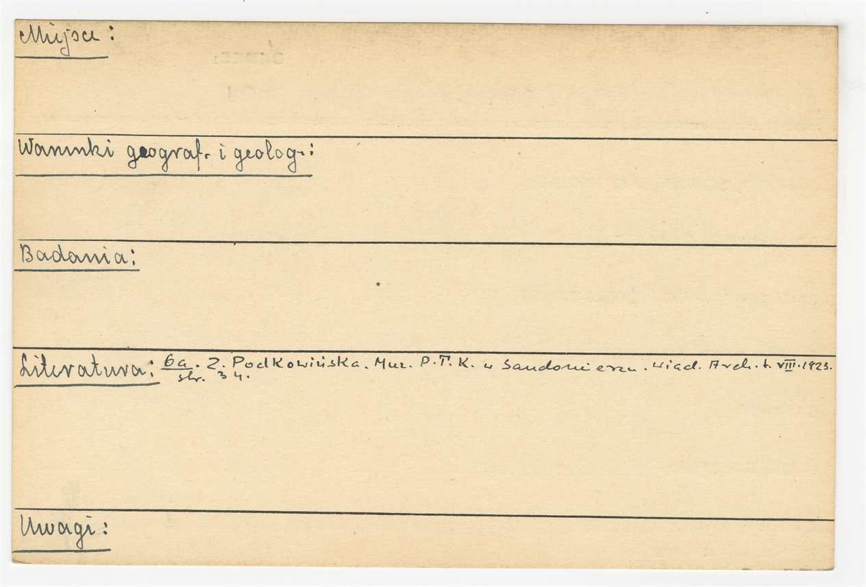 Karta stanowiska "Kamień Mściowski gm. Dwikozy pow. Sandomierz woj. Kieleckie" (druk rękopis) - strona 2