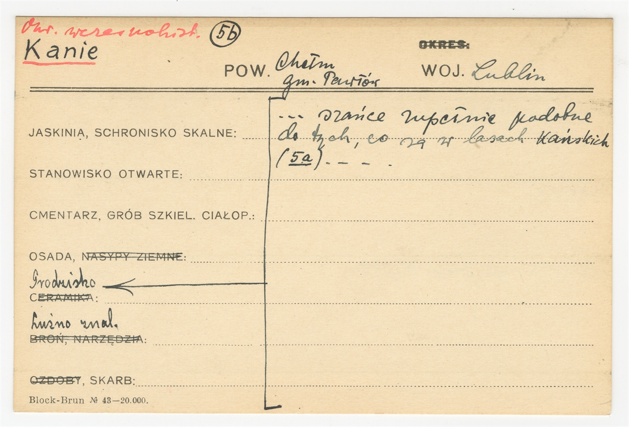 Karta stanowiska "Kanie gm. Pawłów pow. Chełm woj. Lublin" (druk rękopis) - strona 1