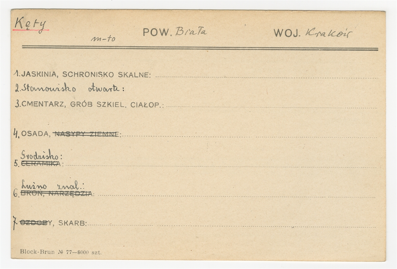 Element 1 - Karta stanowiska "Kęty pow. Biała woj. Kraków" (druk rękopis) - strona 1