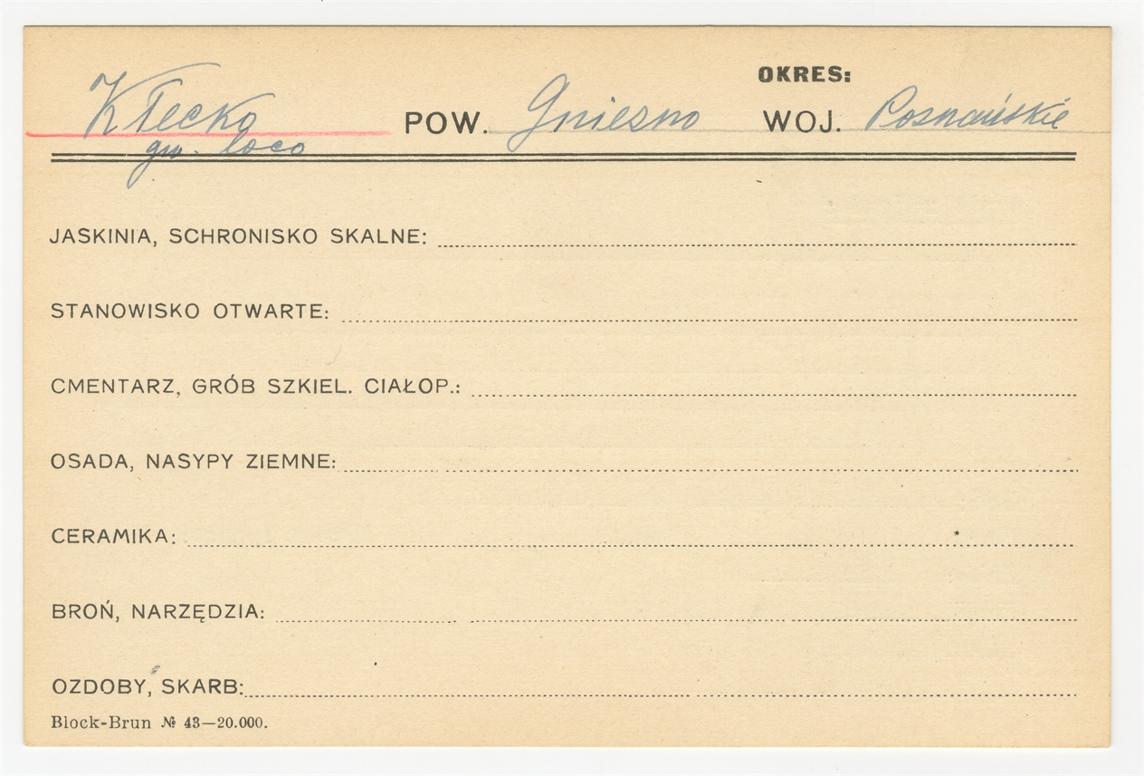 Karta stanowiska "Kłecko gm. loco pow. Gniezno woj. Poznańskie" (druk rękopis) - strona 1