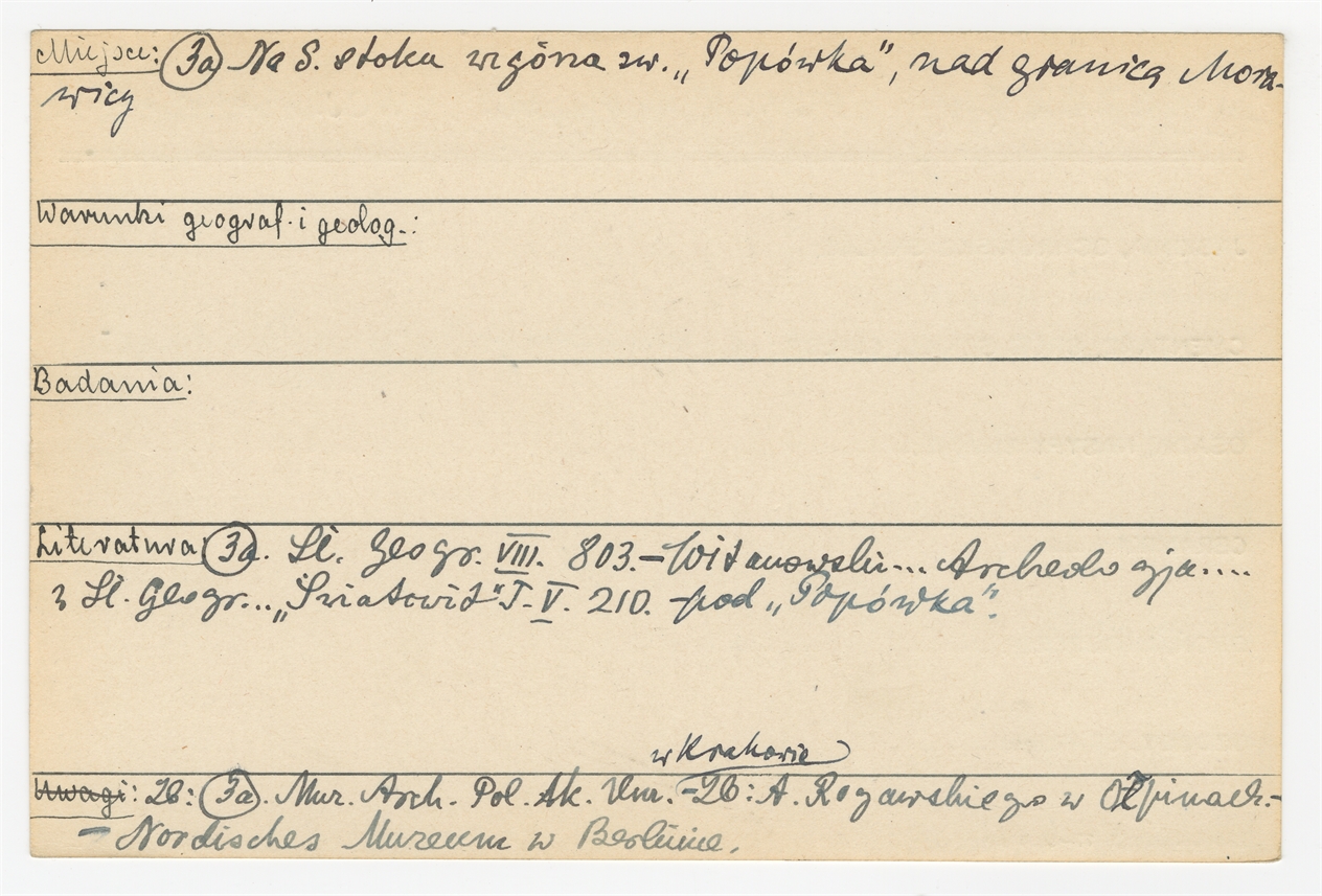 Karta stanowiska "Kleszczów pow. Krakowski woj. Krakiewskie" (druk rękopis) - strona 2