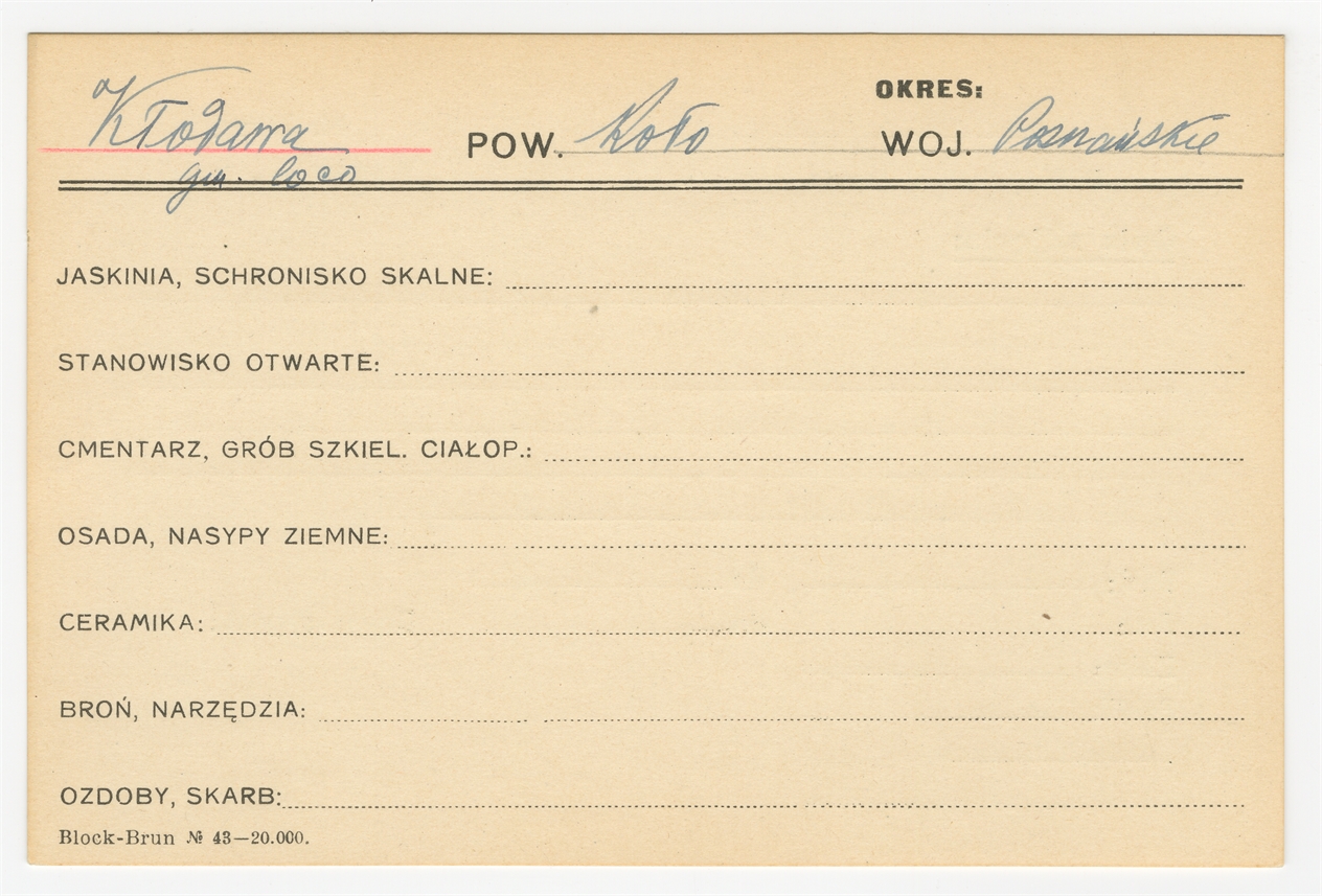 Karta stanowiska "Kłodawa gm. loco pow. Koło woj. Poznańskie" (druk rękopis) - strona 1