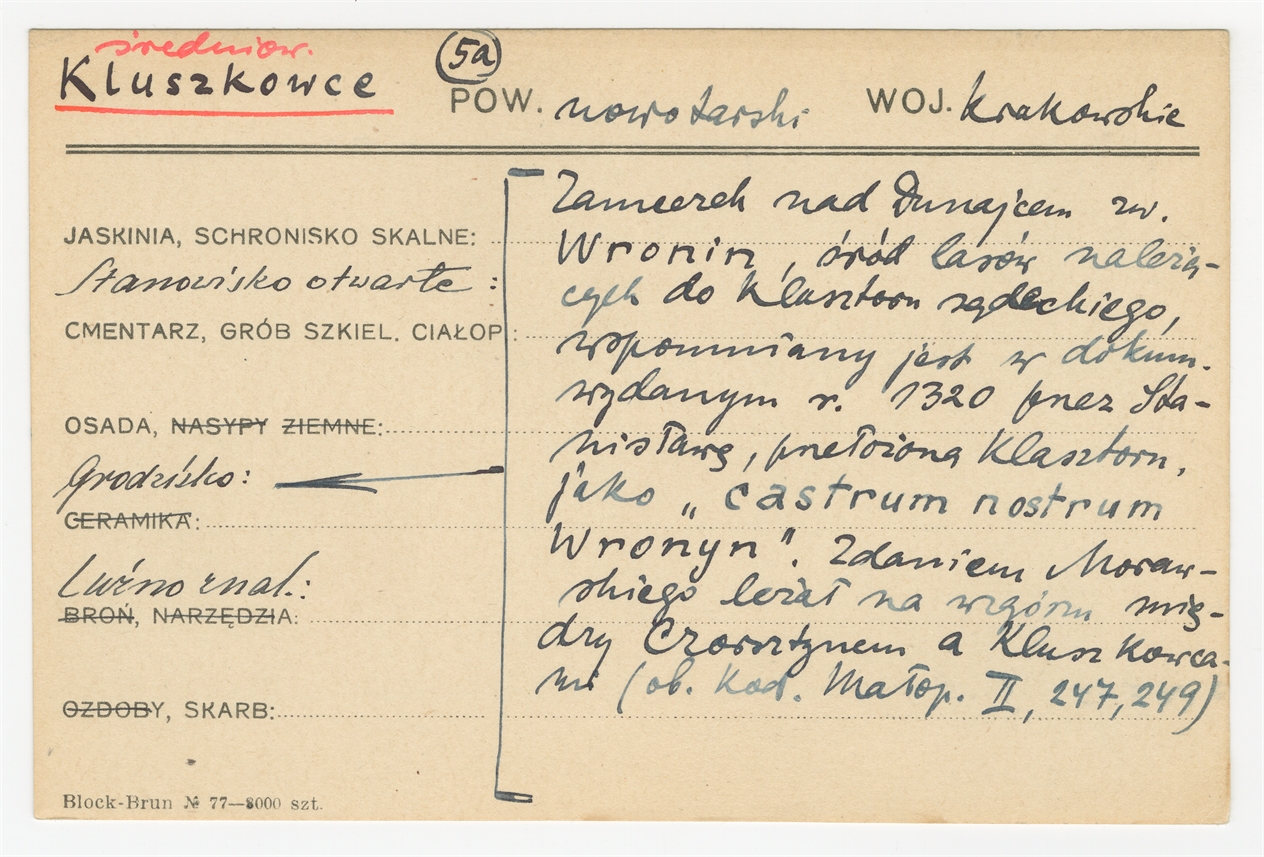 Karta stanowiska "Kluszkowce pow. nowotarski woj. krakowskie" (druk rękopis) - strona 1