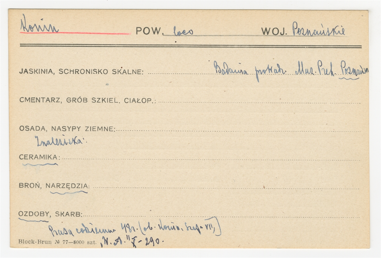 Element 1 - Karta stanowiska "Konin pow. loco woj. Poznańskie" (druk rękopis) - strona 1