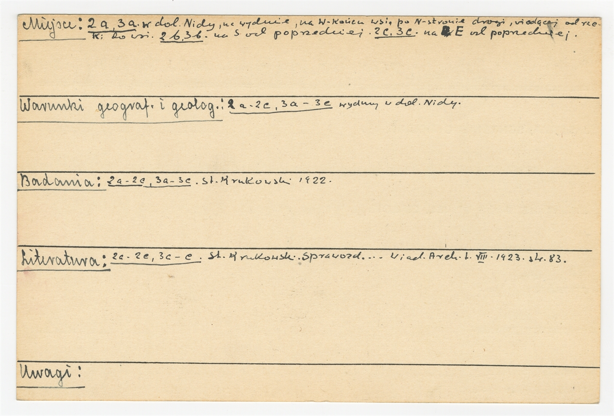 Element 2 - Karta stanowiska "Korytnica gm. Sobków pow. Jędrzejów woj. Kieleckie" (druk rękopis) - strona 2