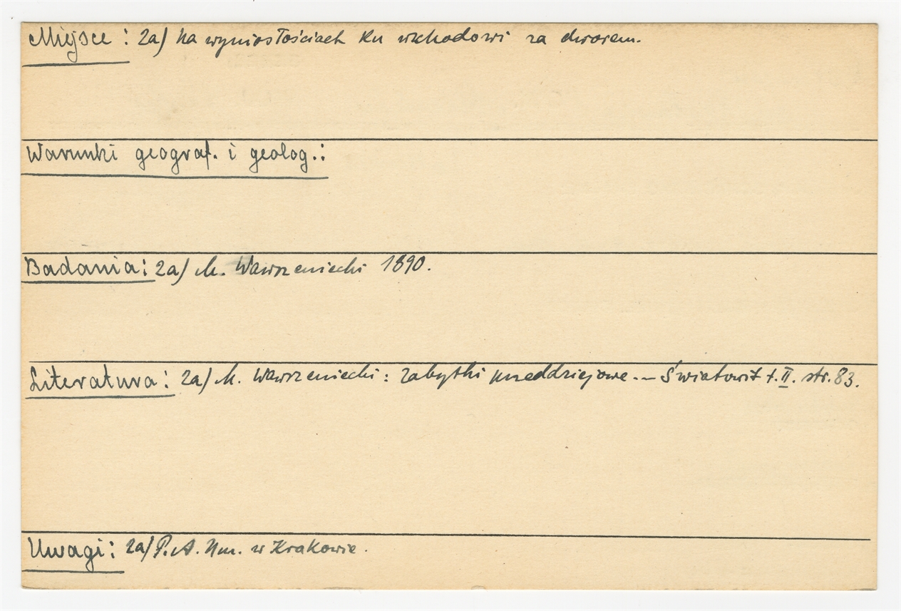 Karta stanowiska "Kościejów gm. Racławice pow. Miechów woj. Kielce" (druk rękopis) - strona 2