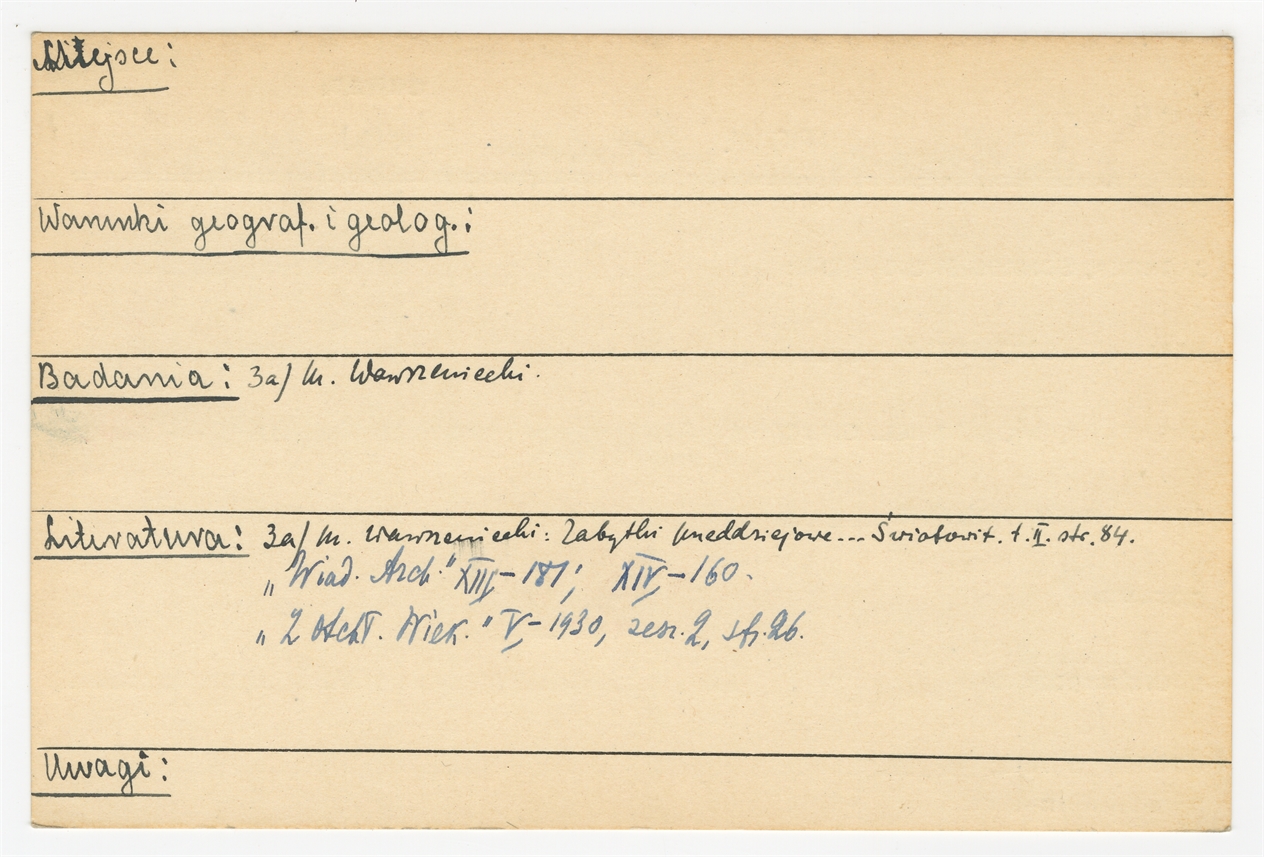 Karta stanowiska "Kowary gm. Łętkowice pow. Miechów woj. Kielce" (druk rękopis) - strona 2