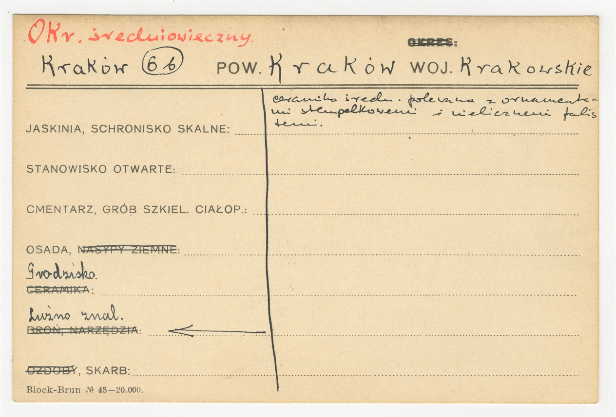 Karta stanowiska "Kraków pow. Kraków woj. Krakowskie" (druk rękopis) - strona 1