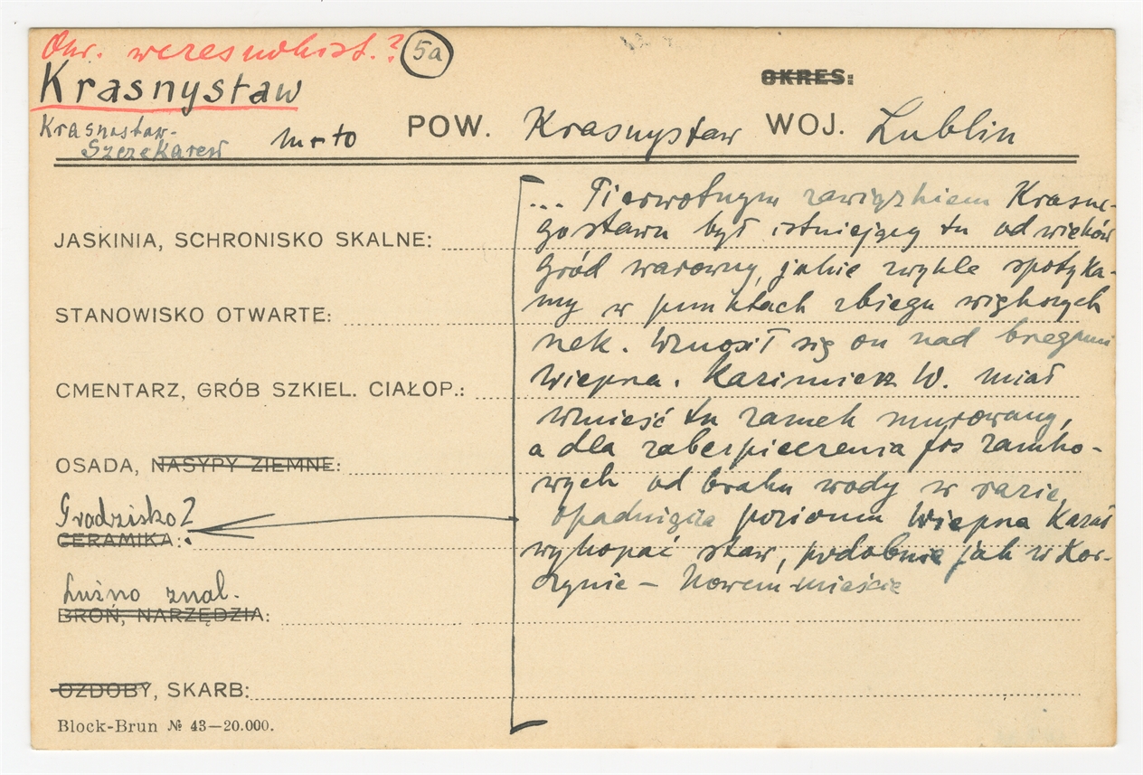 Karta stanowiska "Krasnystaw (Krasnystaw-Szczekarew) pow. Krasnystaw woj. Lublin" (druk rękopis) - strona 1
