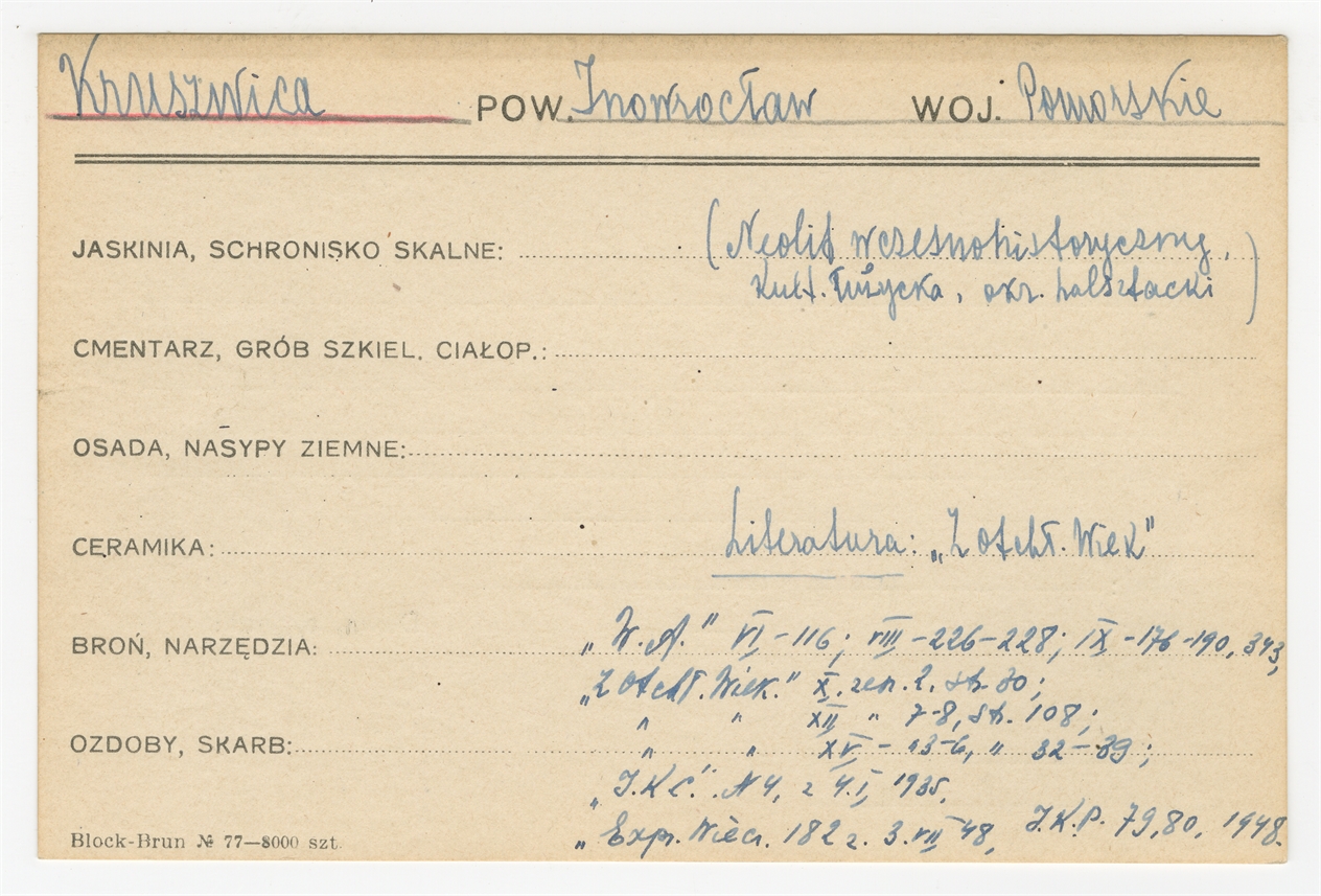 Karta stanowiska "Kruszwica pow. Inowrocław woj. Pomorskie" (druk rękopis) - strona 1