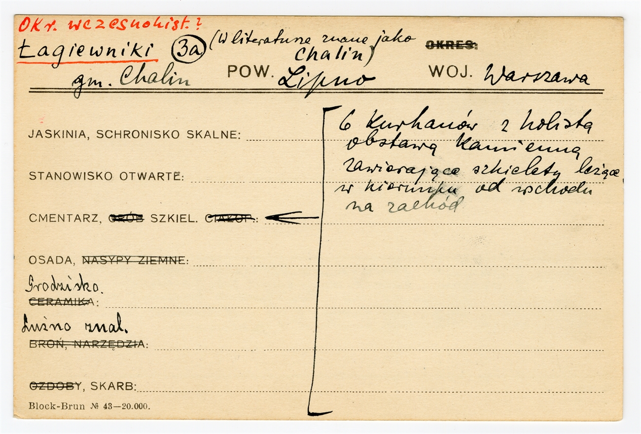 Karta stanowiska "Łagiewniki gm. Chalin pow. Lipno woj. Warszawa" (druk rękopis) - strona 1