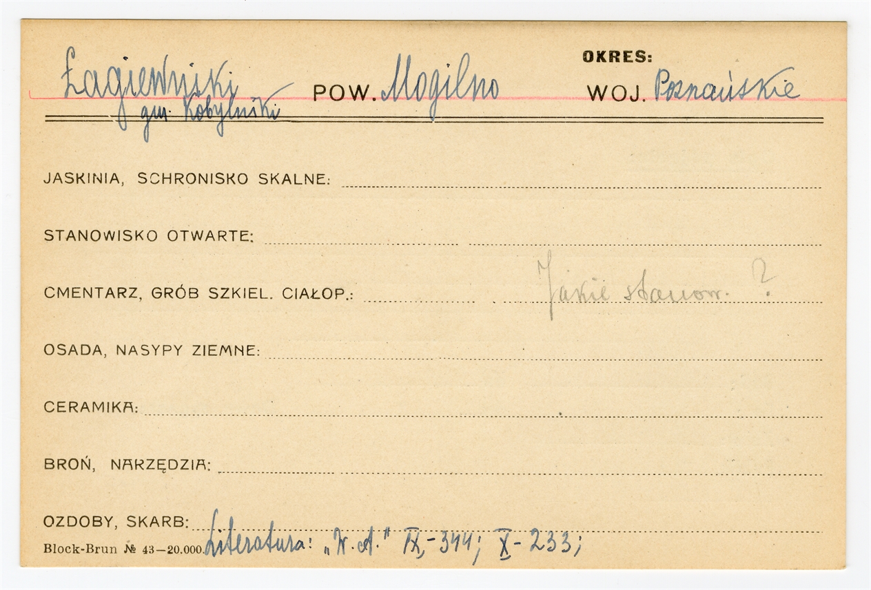 Karta stanowiska "Łagiewniki gm. Kobylniki pow. Mogilno woj. Poznańskie" (druk rękopis) - strona 1