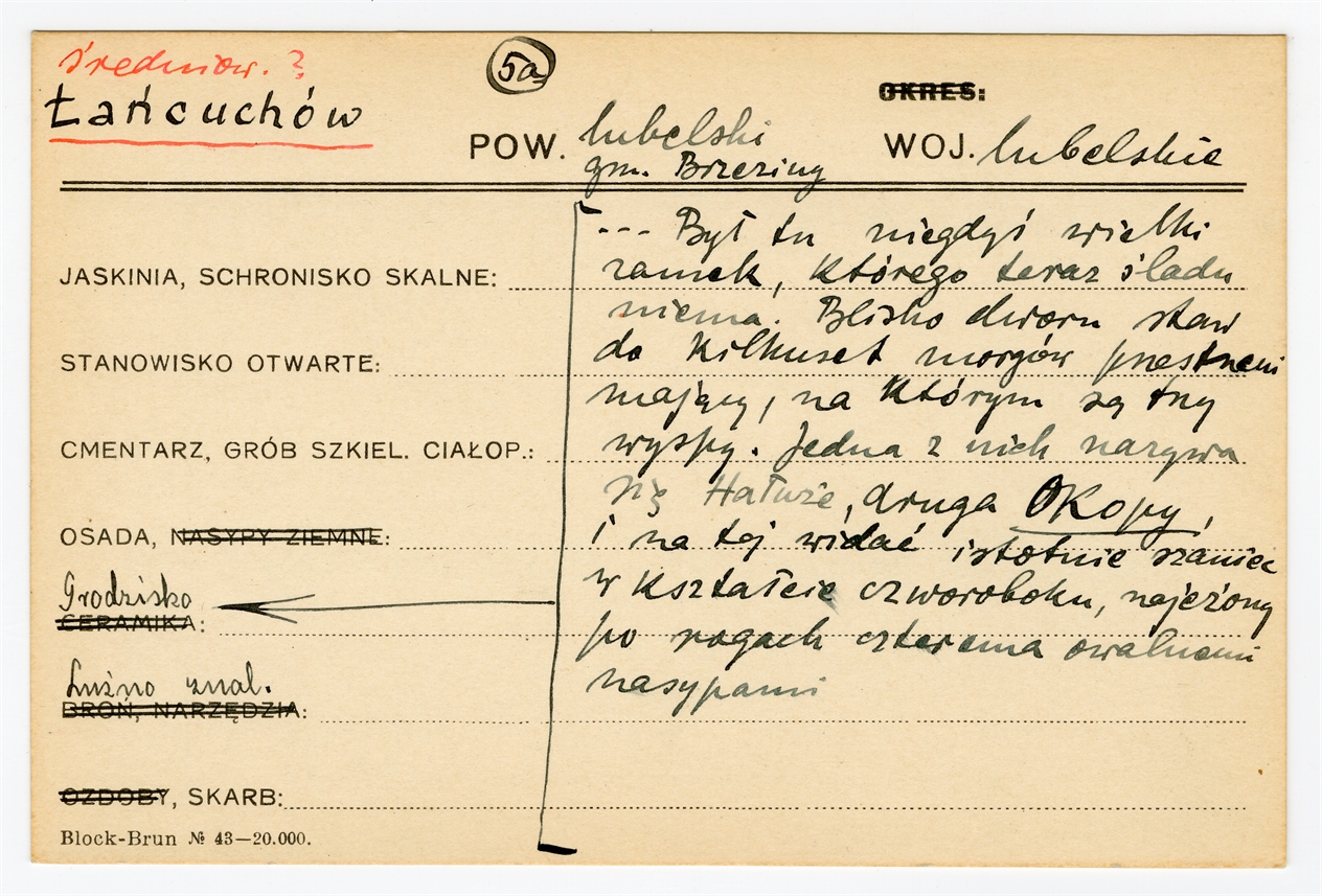 Karta stanowiska "Łańcuchów gm. Brzeziny pow. lubelski woj. lubelskie" (druk rękopis) - strona 1
