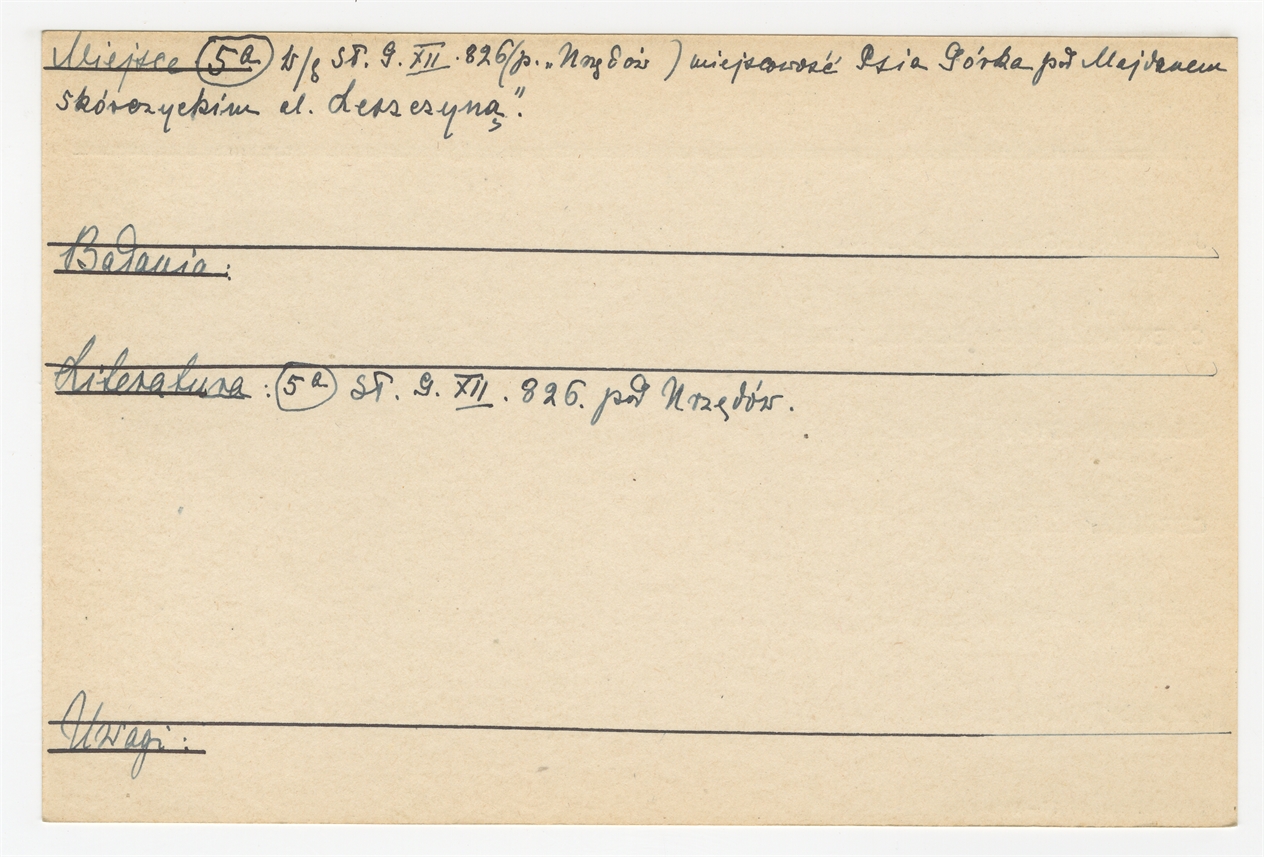 Element 2 - Karta stanowiska "Leszczyny gm. Urzędów pow. janowski woj. lubelskie" (druk rękopis) - strona 2