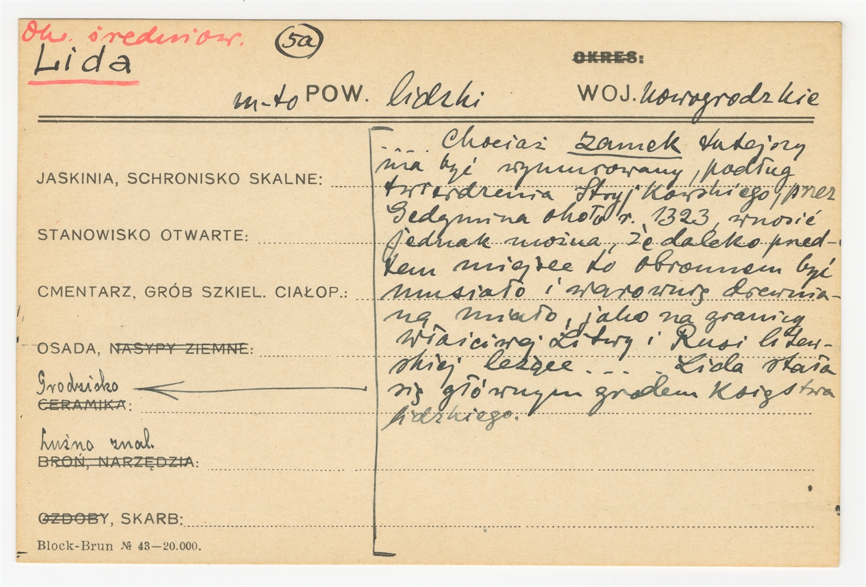 Karta stanowiska "Lida pow. lidzki woj. nowogródzkie" (druk rękopis) - strona 1