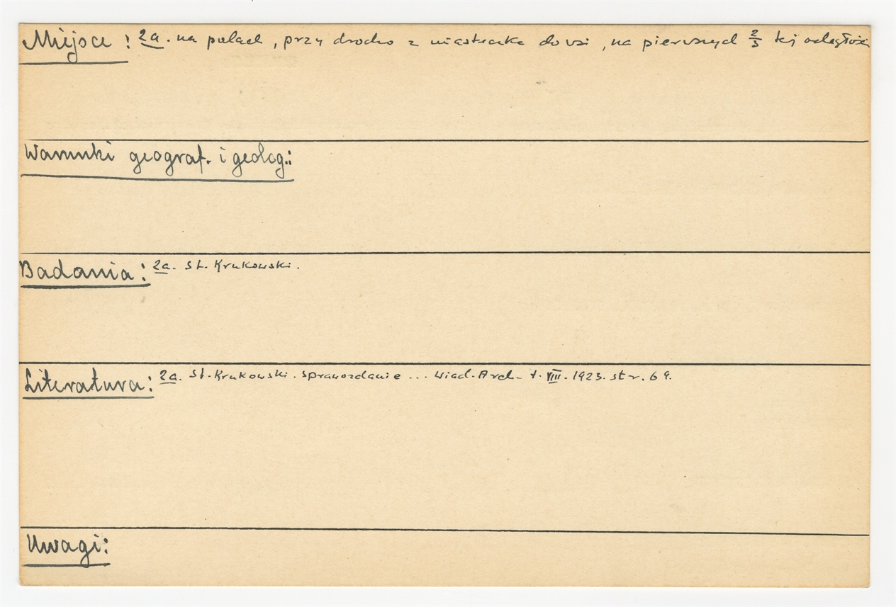 Element 2 - Karta stanowiska "Lipienice-Wierzbica gm. Rogów pow. Radom woj. Kieleckie" (druk rękopis) - strona 2