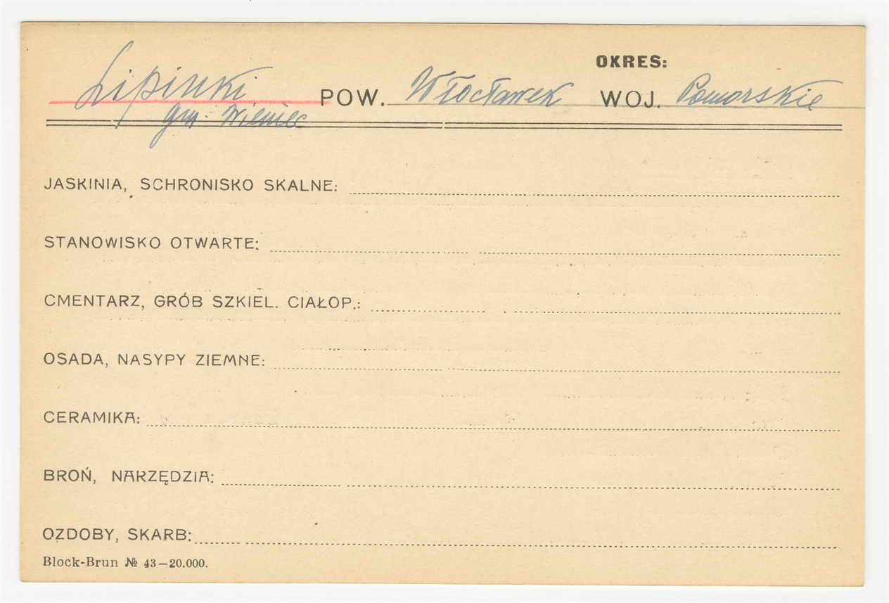 Karta stanowiska "Lipinki gn. Wieniec pow. Włocławek woj. Pomorskie" (druk rękopis) - strona 1