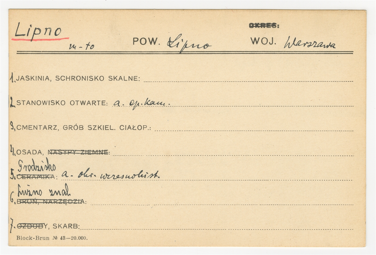 Karta stanowiska "Lipno pow. Lipno woj. Warszawa" (druk rękopis) - strona 1