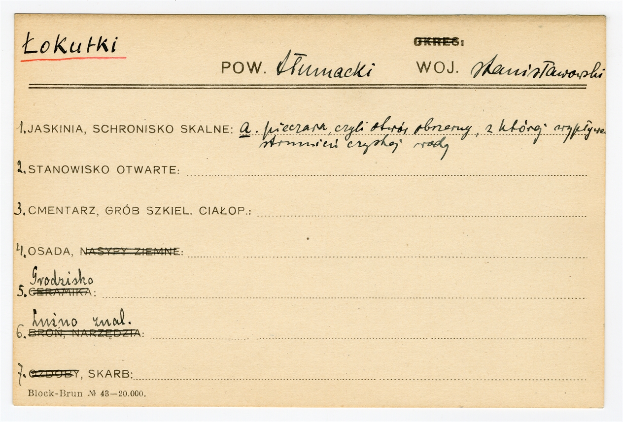 Karta stanowiska "Łokutki pow. tłumacki woj. stanisławowskie" (druk rękopis) - strona 1