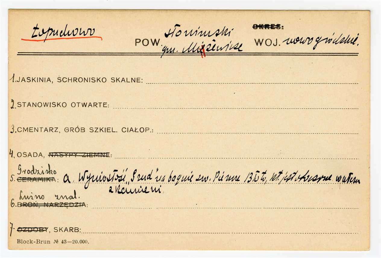Karta stanowiska "Łopuchowo gm. Miżewicze pow. słonimski woj. nowogródzkie" (druk rękopis) - strona 1