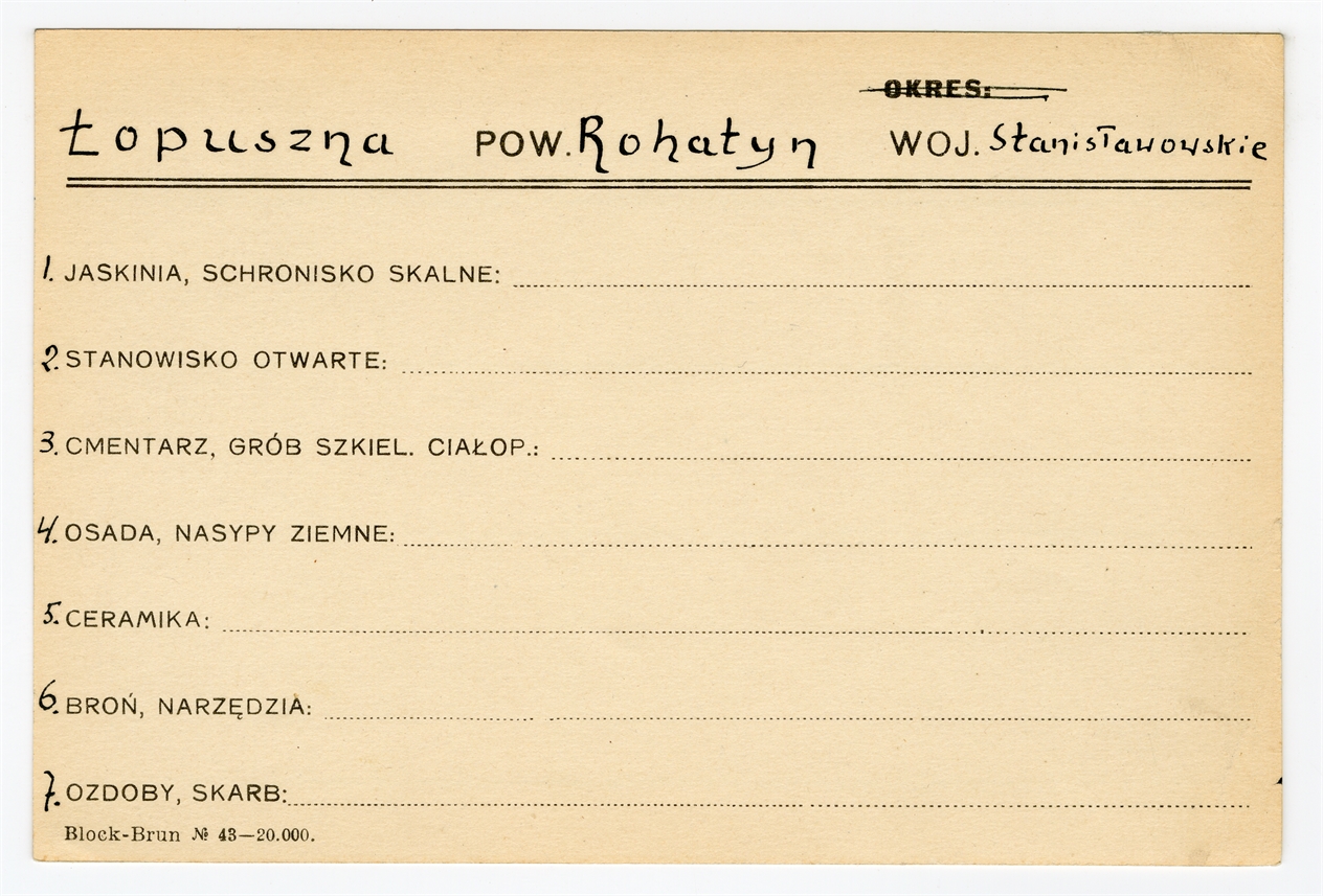 Karta stanowiska "Łopuszna pow. Rohatyn woj. Stanisławowskie" (druk rękopis) - strona 1