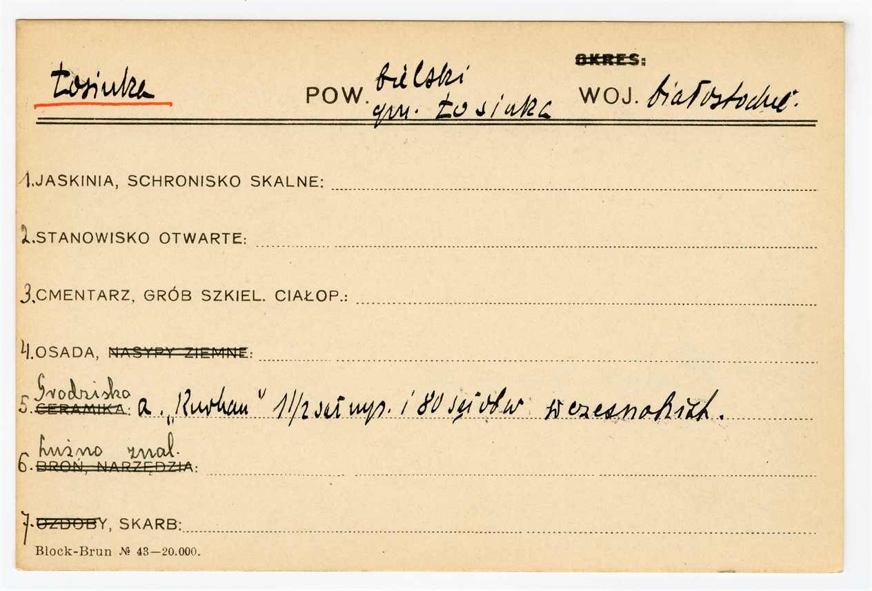 Karta stanowiska "Łosinka gm. Łosinka pow. bielski woj. białostockie" (druk rękopis) - strona 1