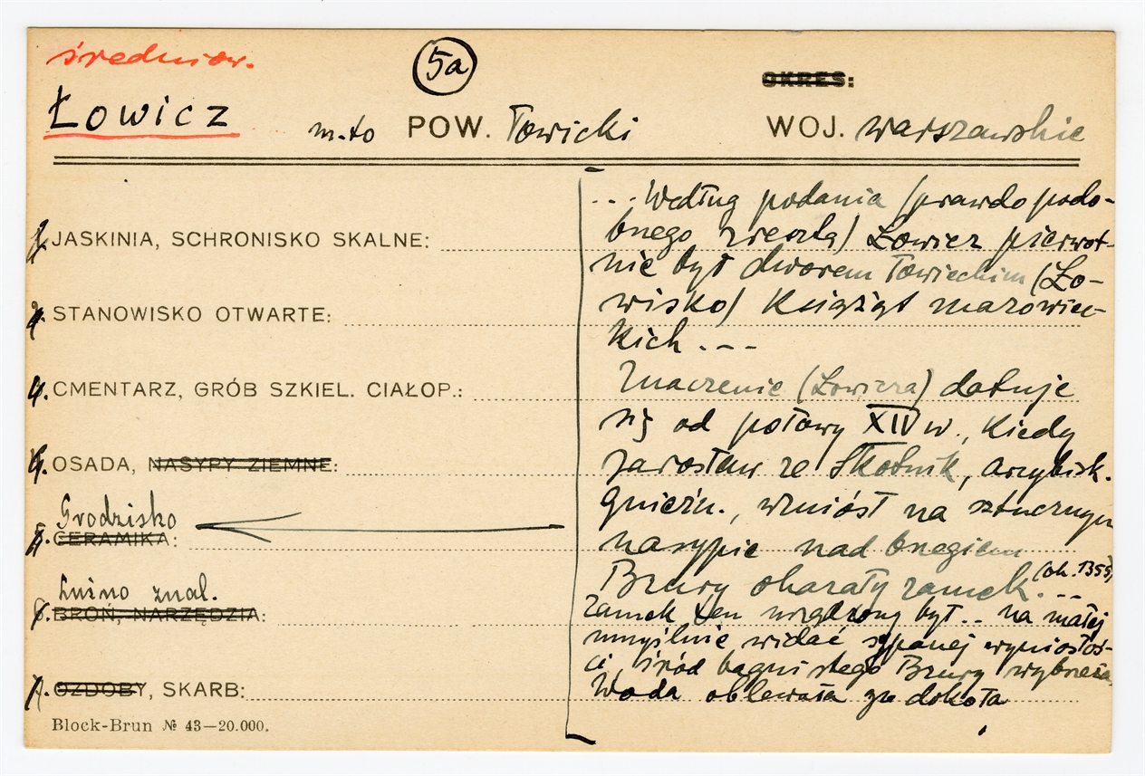Karta stanowiska "Łowicz pow. łowicki woj. warszawskie" (druk rękopis) - strona 1