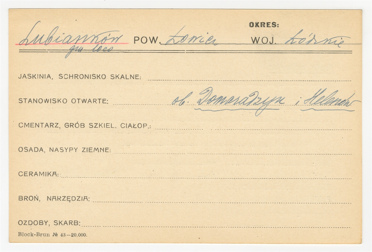 Karta stanowiska "Lubianków gm. loco pow. Łowicz woj. Łódzkie" (druk rękopis) - strona 1