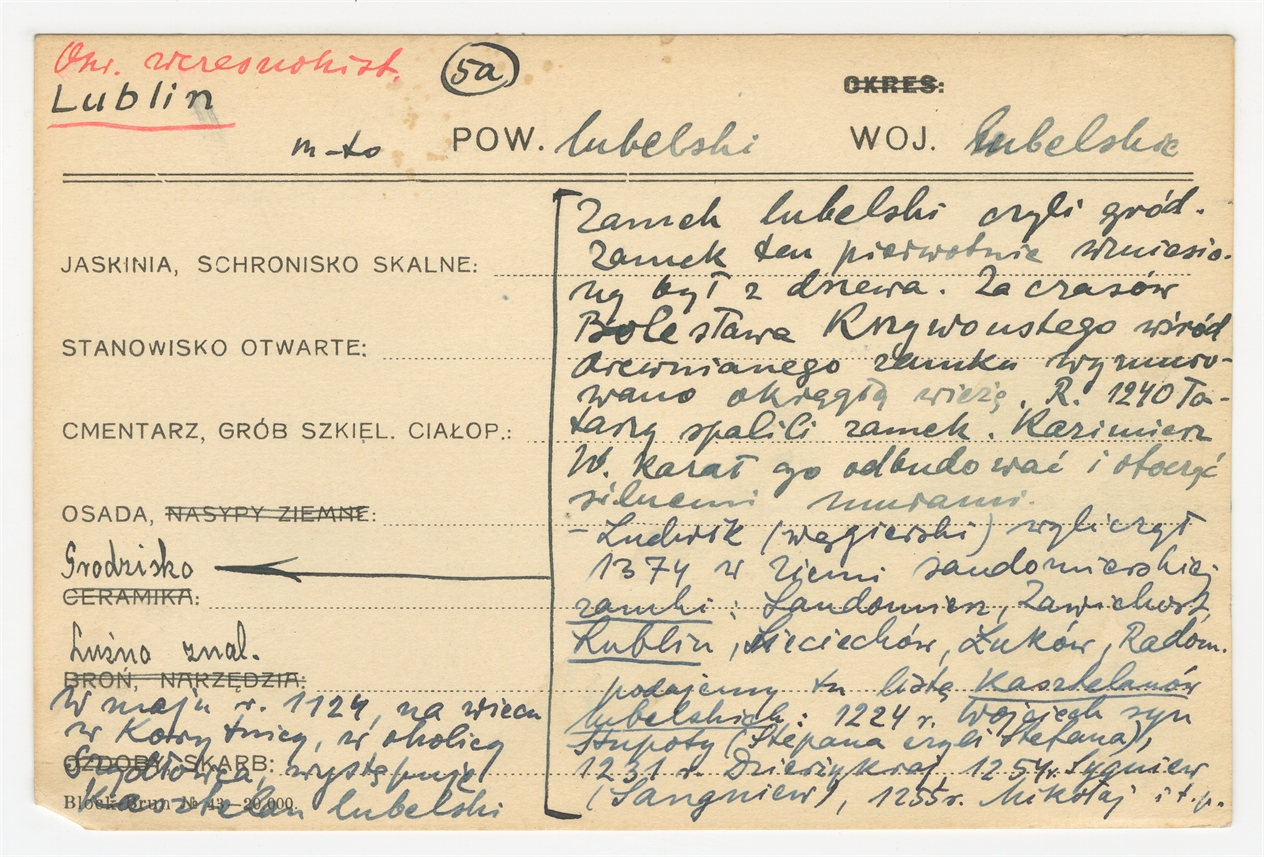 Karta stanowiska "Lublin pow. lubelski woj. lubelskie" (druk rękopis) - strona 1