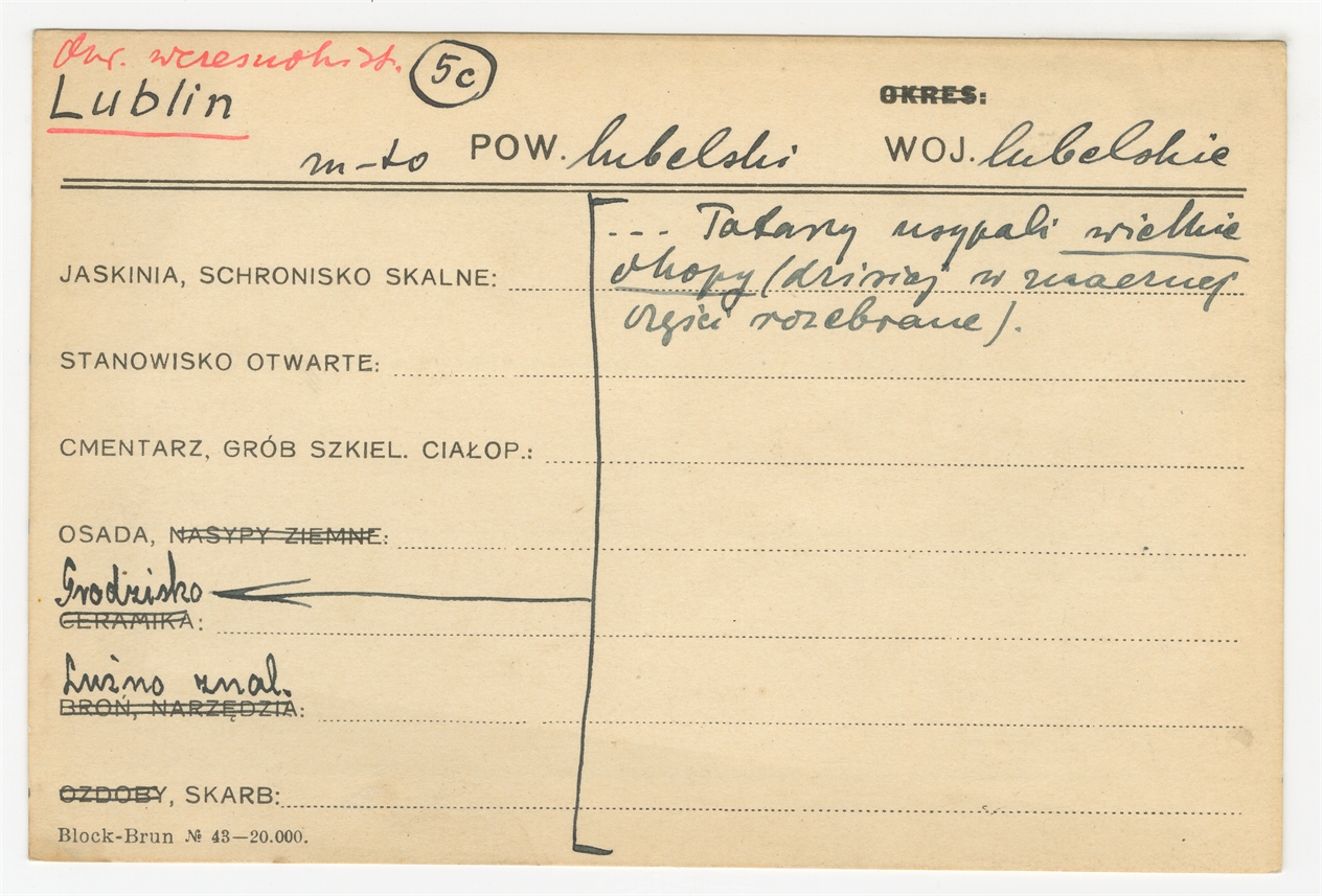 Karta stanowiska "Lublin pow. lubelski woj. lubelskie" (druk rękopis) - strona 1
