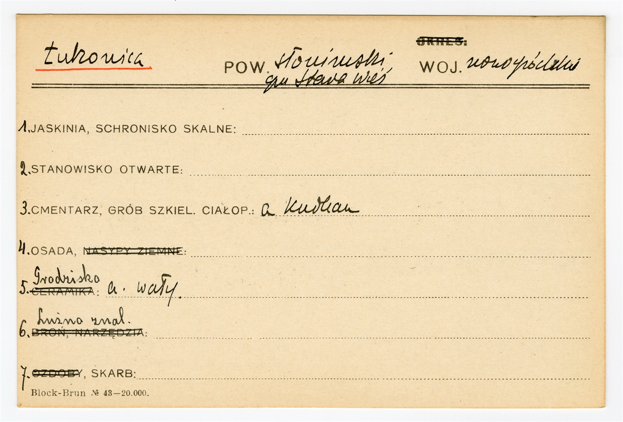 Karta stanowiska "Łukonica gm. Stara Wieś pow. słonimski woj. nowogródzkie" (druk rękopis) - strona 1