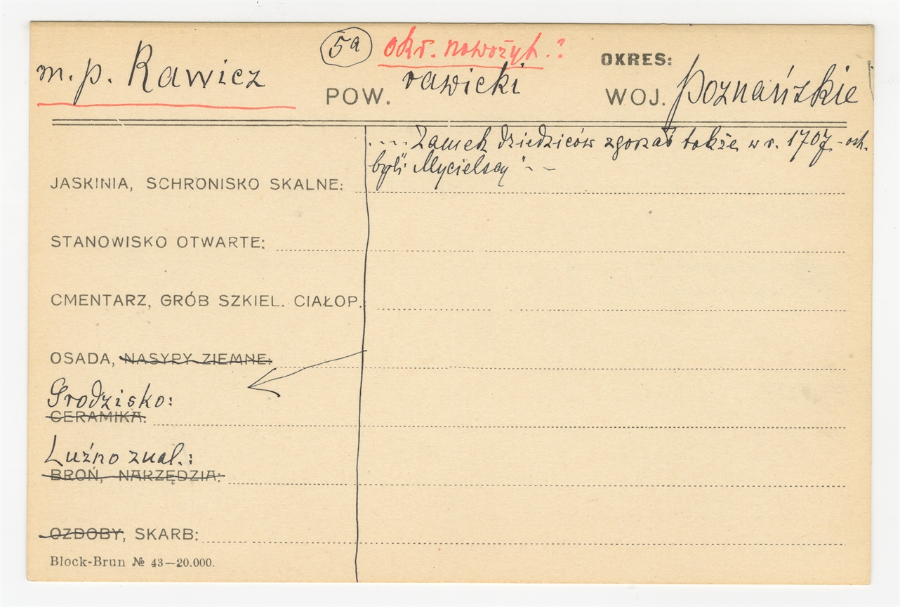 Karta stanowiska "m.p. Rawicz pow. rawicki woj. poznańskie" (druk rękopis) - strona 1
