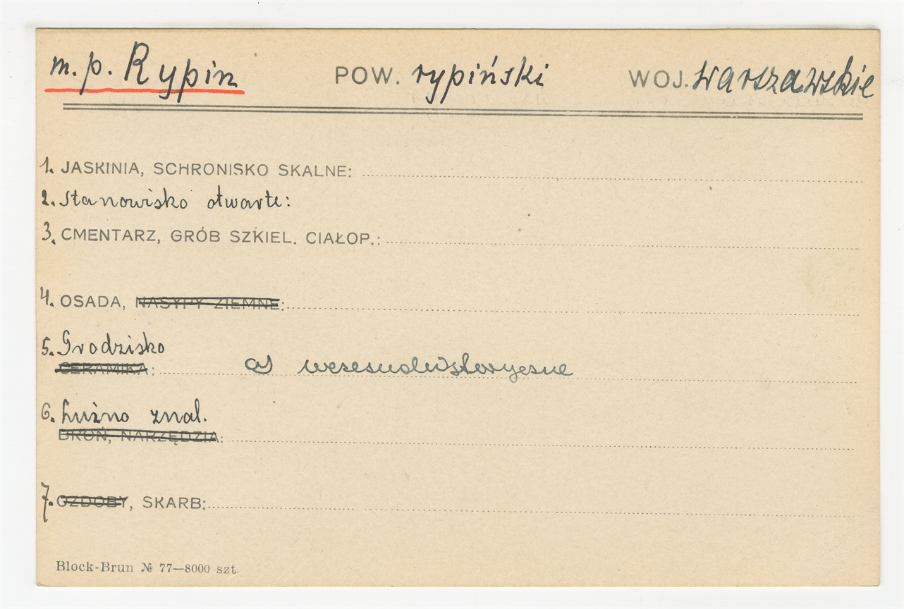 Karta stanowiska "m.p. Rypin pow. rypiński woj. warszawskie" (druk rękopis) - strona 1
